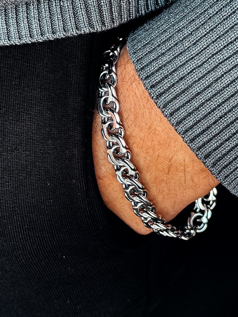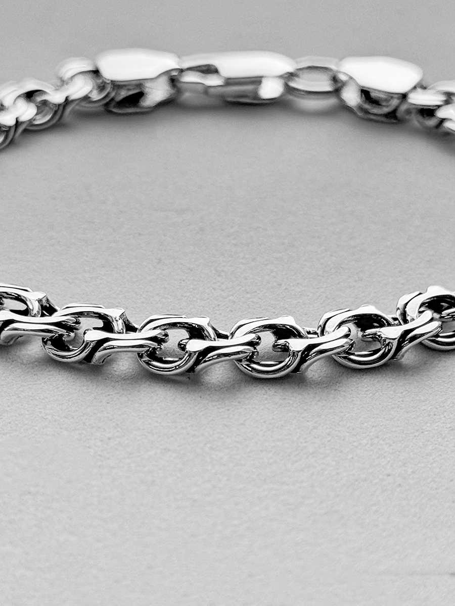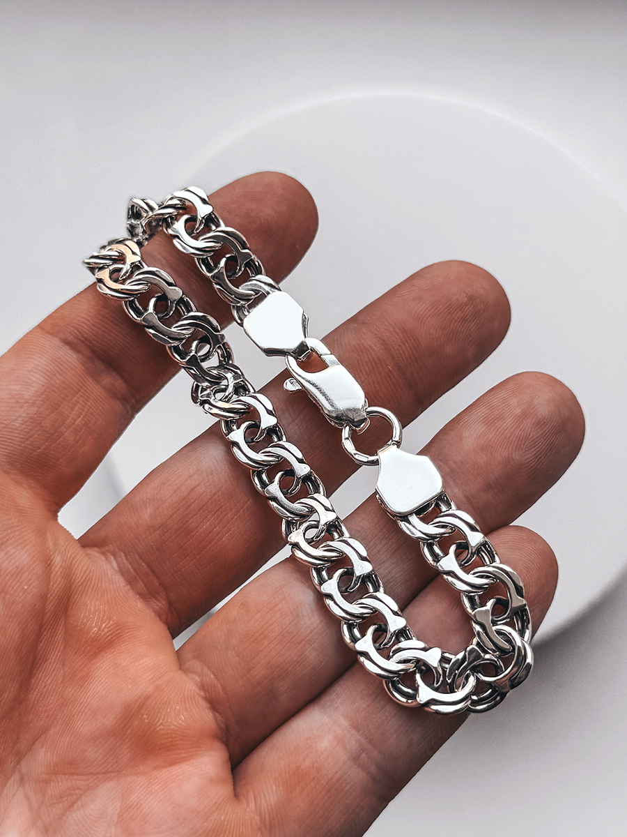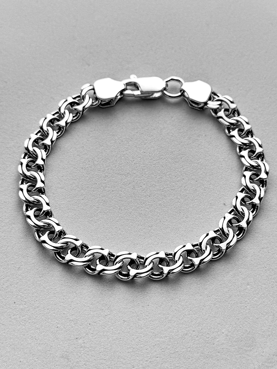 Срібний браслет 925-ї проби преміальної якості. Виготовлений вручну, цей браслет вирізняється своєю міцністю та бездоганною якістю.