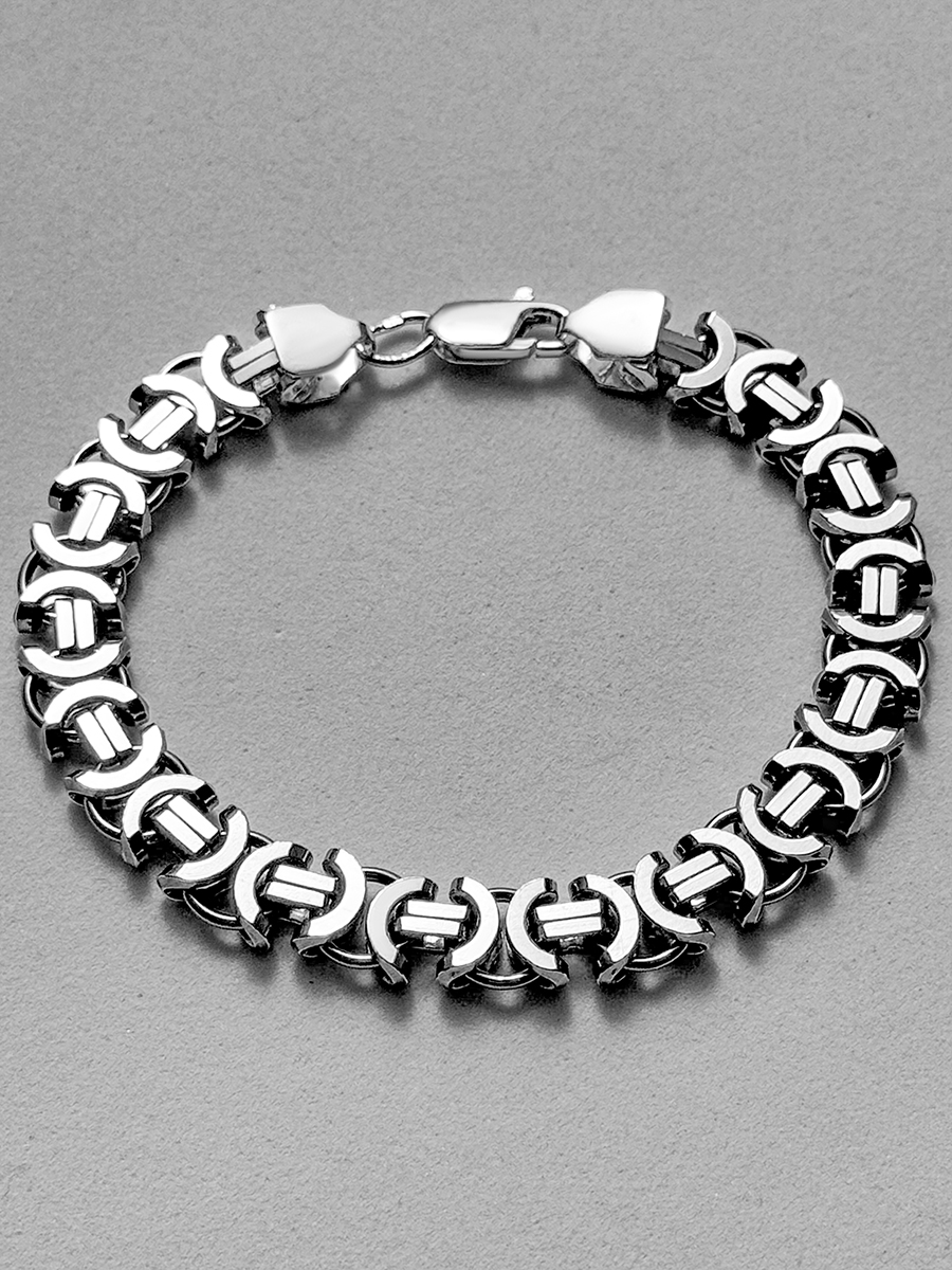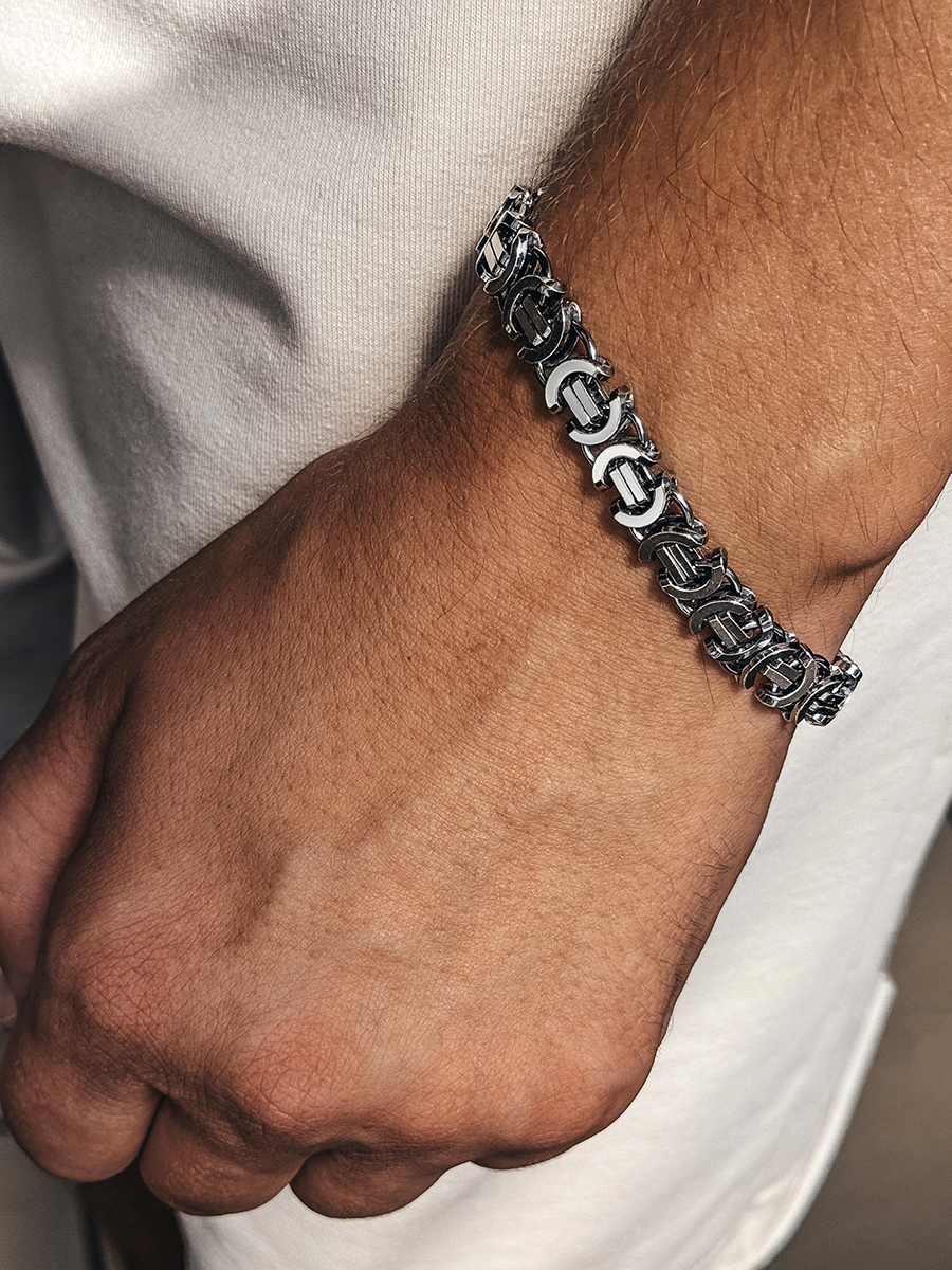 Масивний срібний браслет преміальної якості з алмазним огранюванням, яке надає йому неперевершеного сяйва та блиску. Виготовлений вручну, цей браслет вирізняється своєю міцністю та бездоганною якістю.