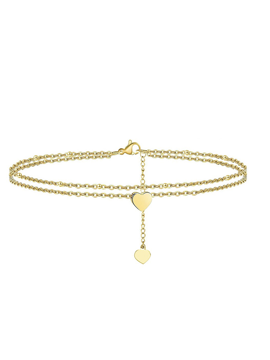 Подвійний срібний браслетик з позолотою на ніжку, прикрашений підвіскою у вигляді серця.