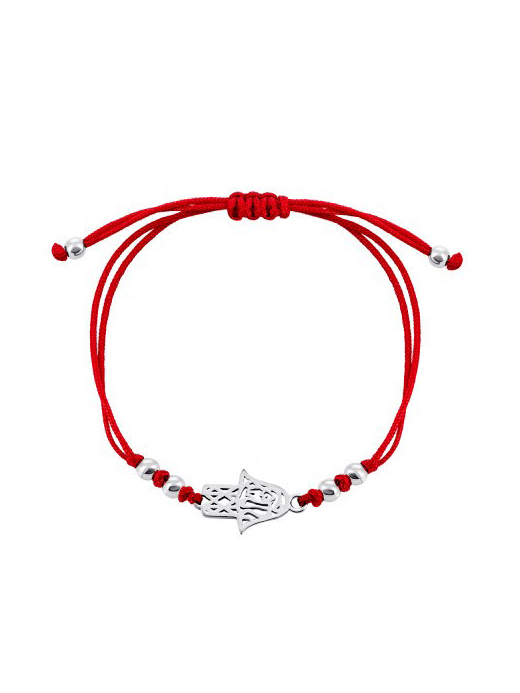 Браслет на червоній нитці зі срібними вставками.