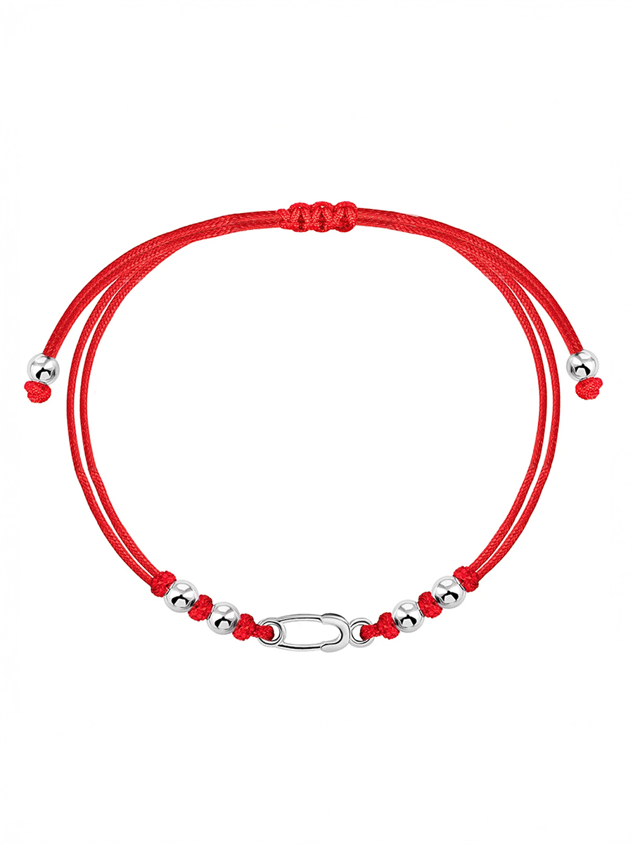 Браслет на червоній нитці зі срібними вставками.