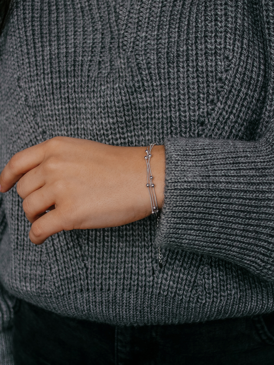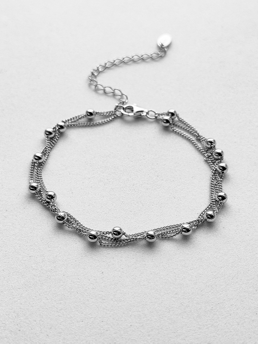 Стильнй потрійний браслетик з кульками, створений вручну зі срібла найвищої якості та вкритий родієм.