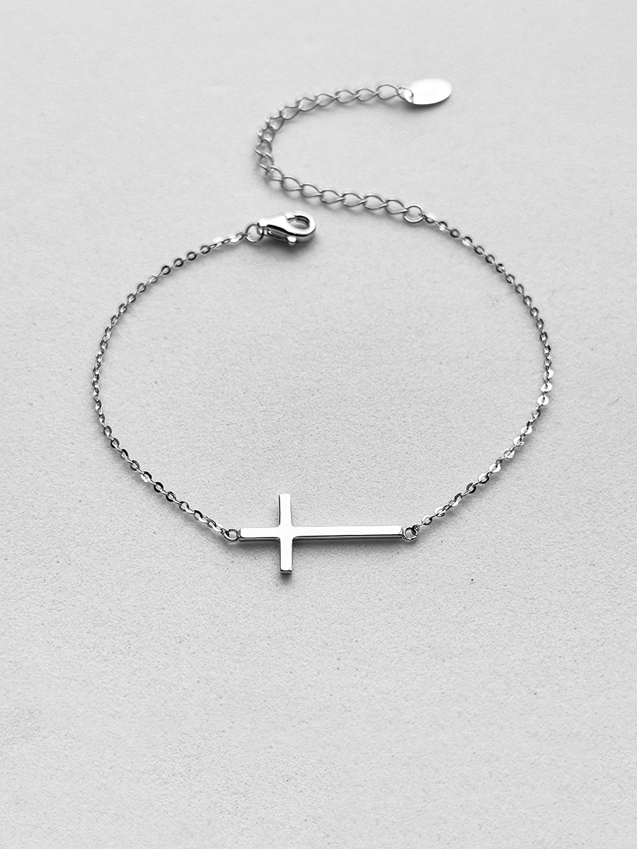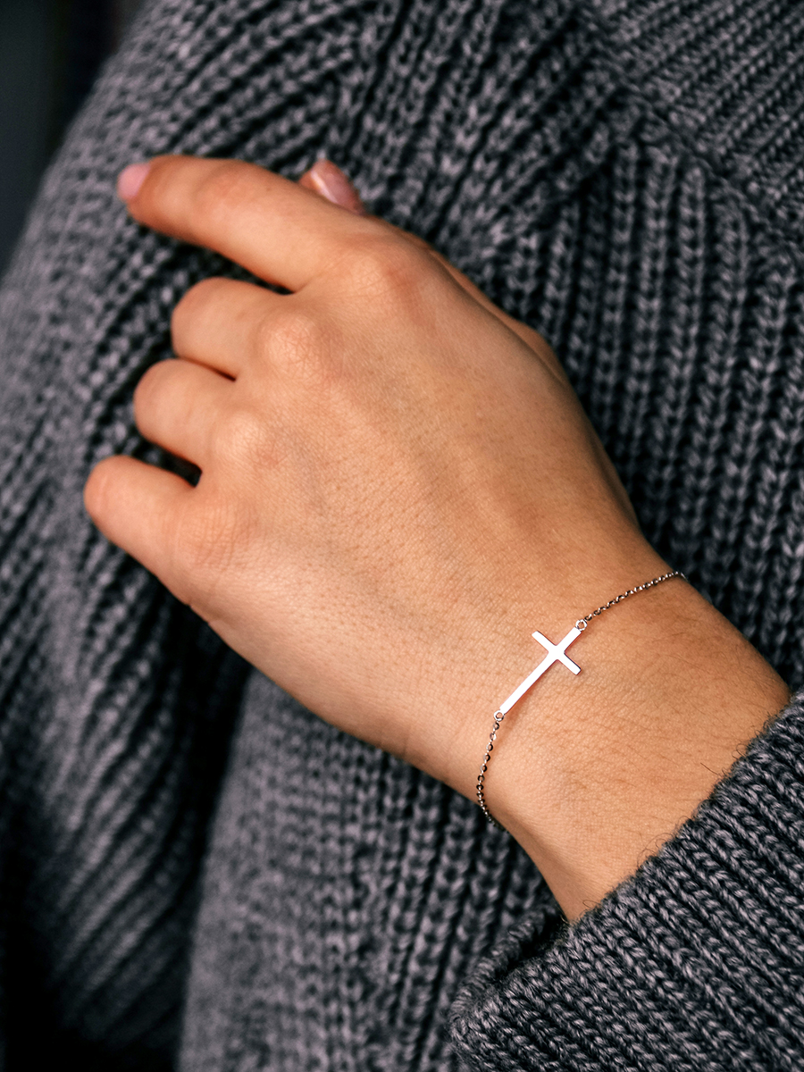 Лаконічний та стильний срібний браслет з хрестиком.