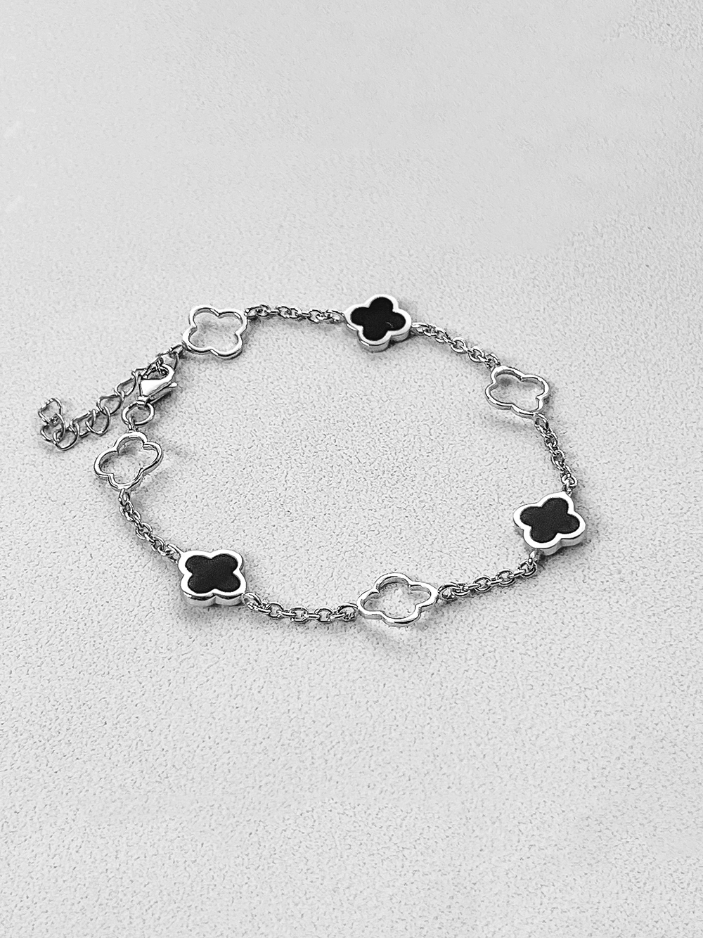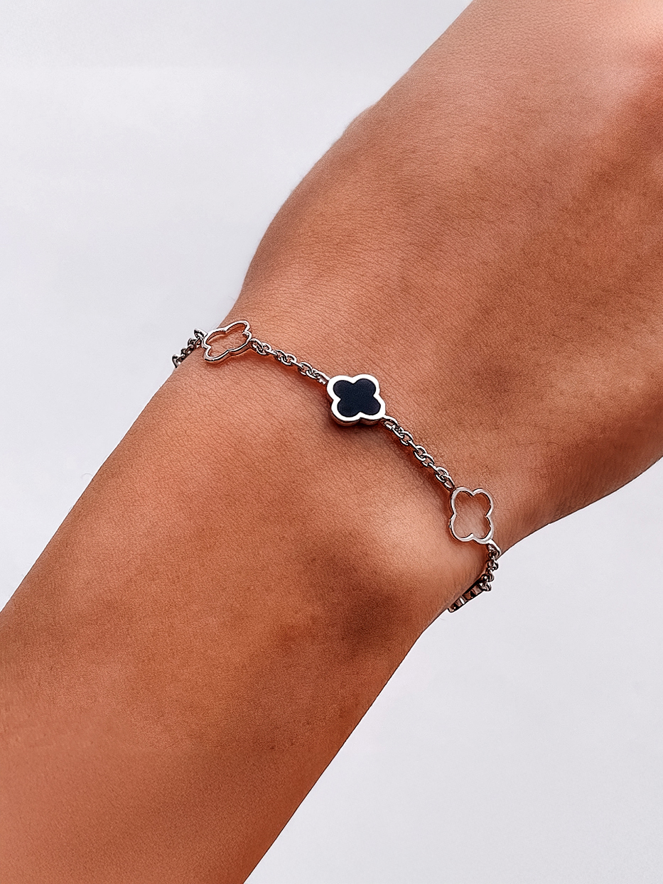 Стильний срібний браслетик з чотирилисниками.