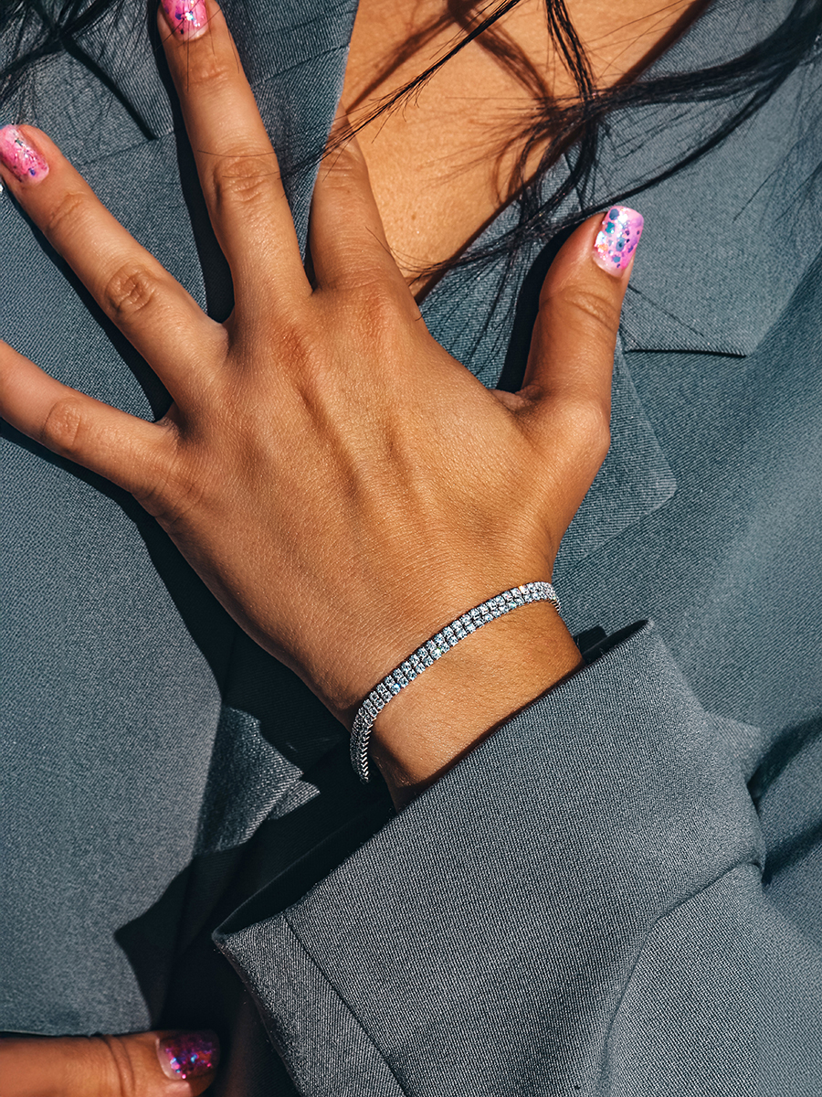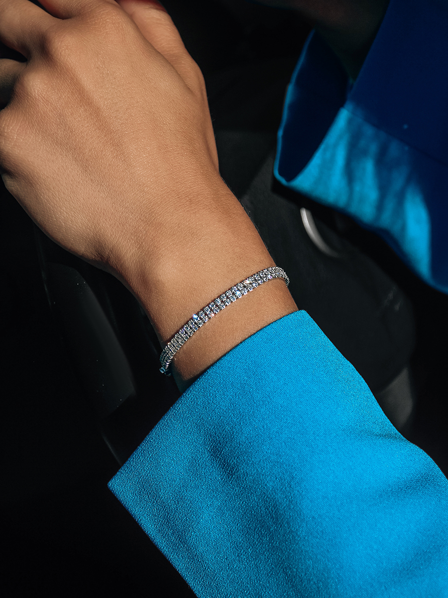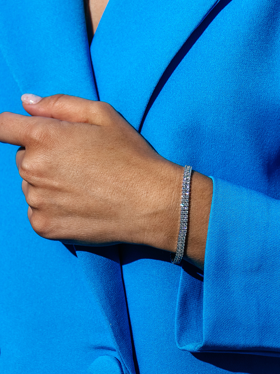 Ефектний срібний браслет з родієвим покриттям та фіанітами із діамантовим ограновуванням.
