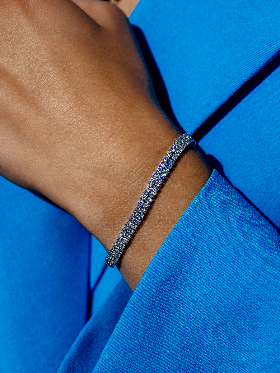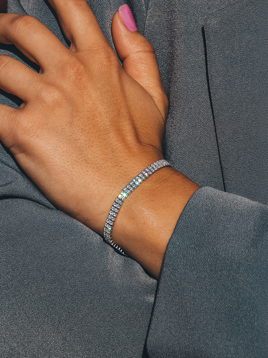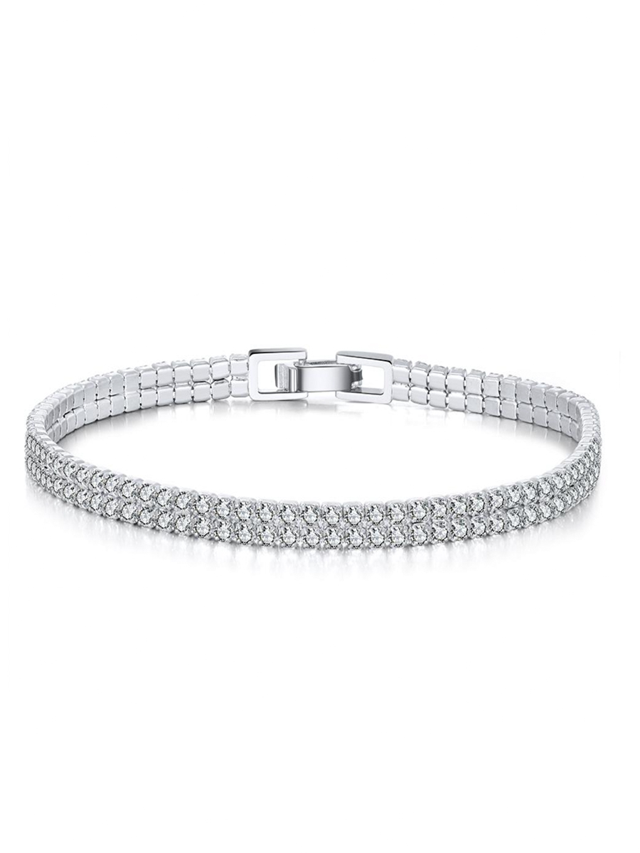 Ефектний срібний браслет з родієвим покриттям та фіанітами із діамантовим ограновуванням.