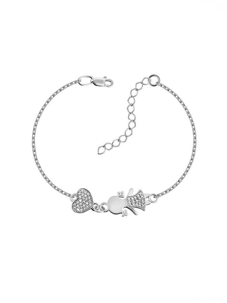 Срібний браслет із підвіскою «Дівчинка» та серцем, інкрустованим преміальними фіанітами. Ніжний символ любові та сімейних цінностей.