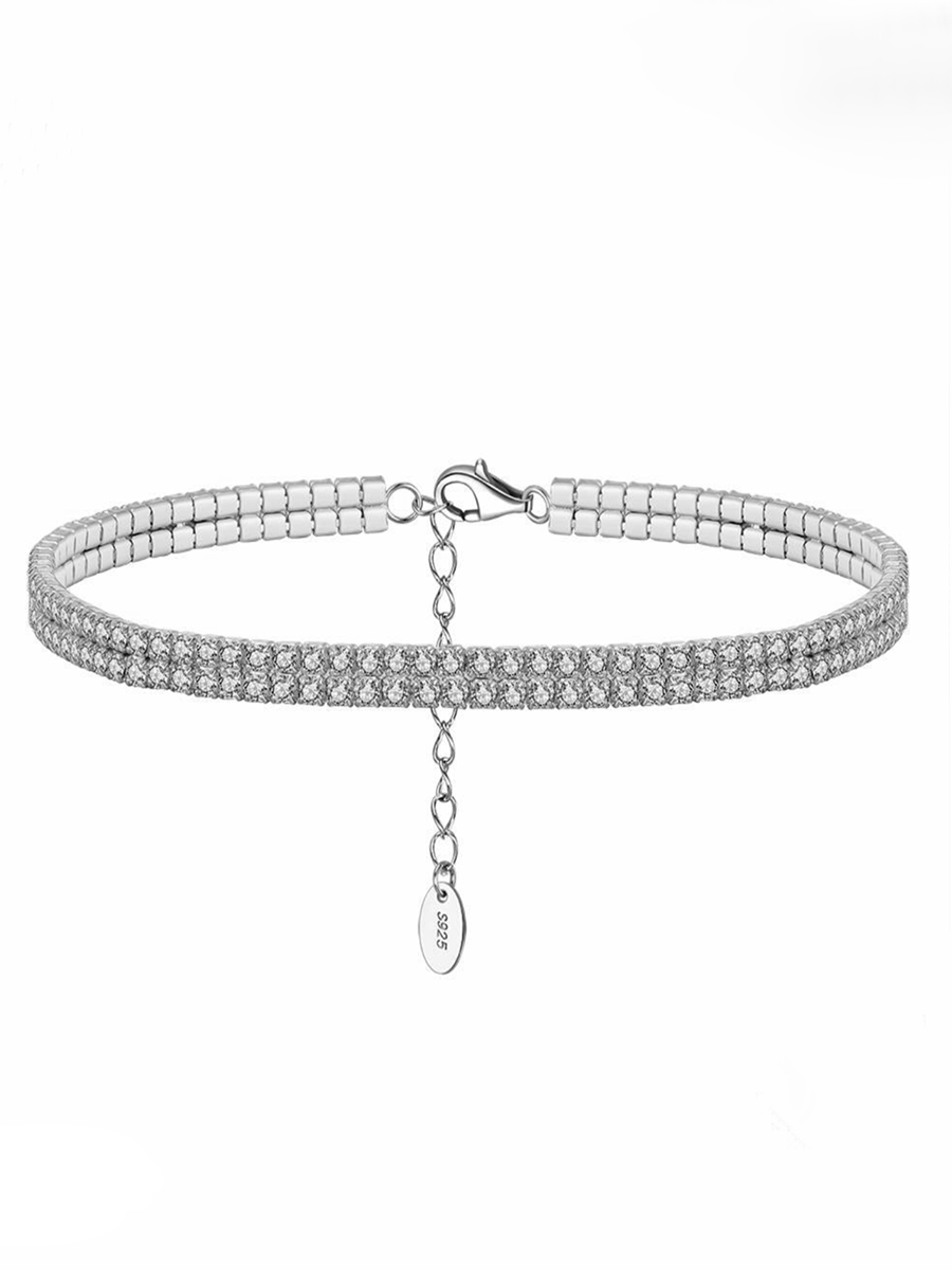 Ефектний срібний браслет на ніжку з родієвим покриттям та фіанітами із діамантовим ограновуванням.
