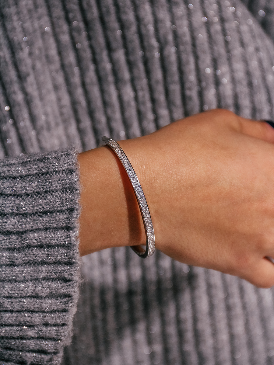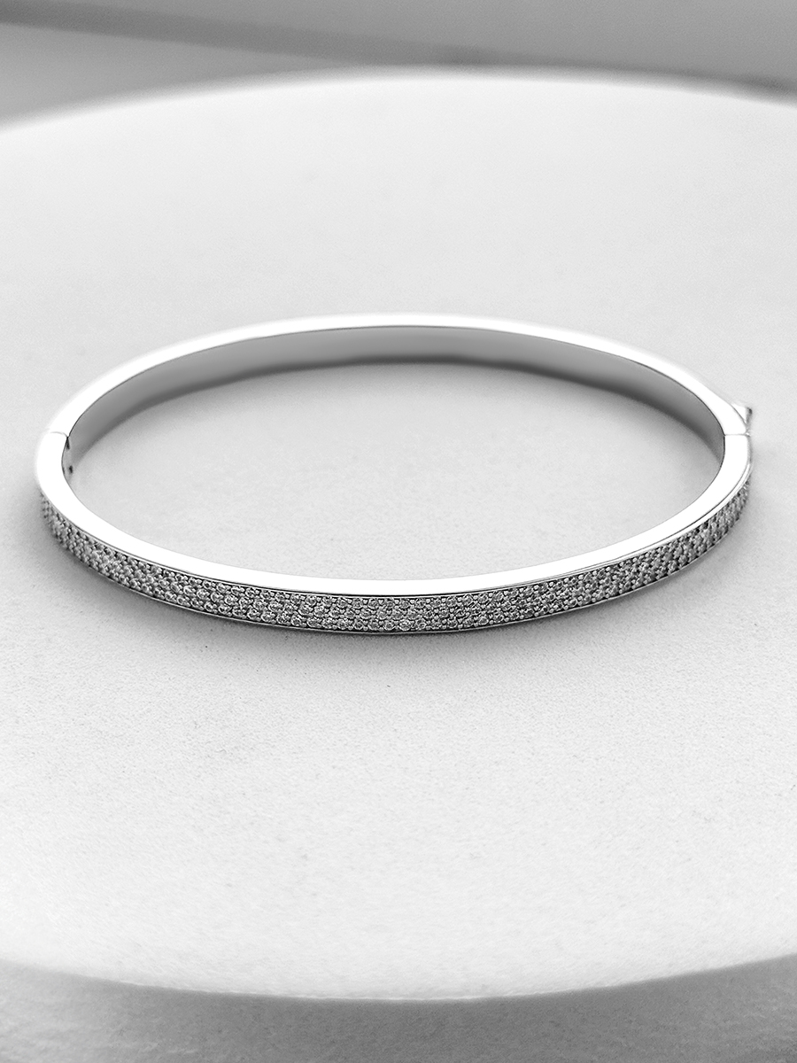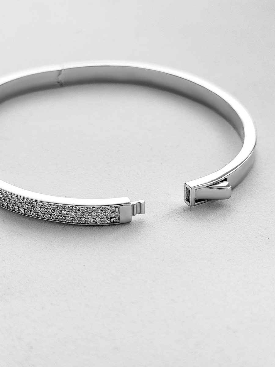 Неперевершений каркасний браслет з фіанітами із діамантовим ограновуванням - справжня класика стилю та моди. Носіть як самомтійну прикрасу та поєднуйте з іншими браслетами створюючи унікальний багатошаровий образ. Габарити: обхват - 17 см., внутрішні пара