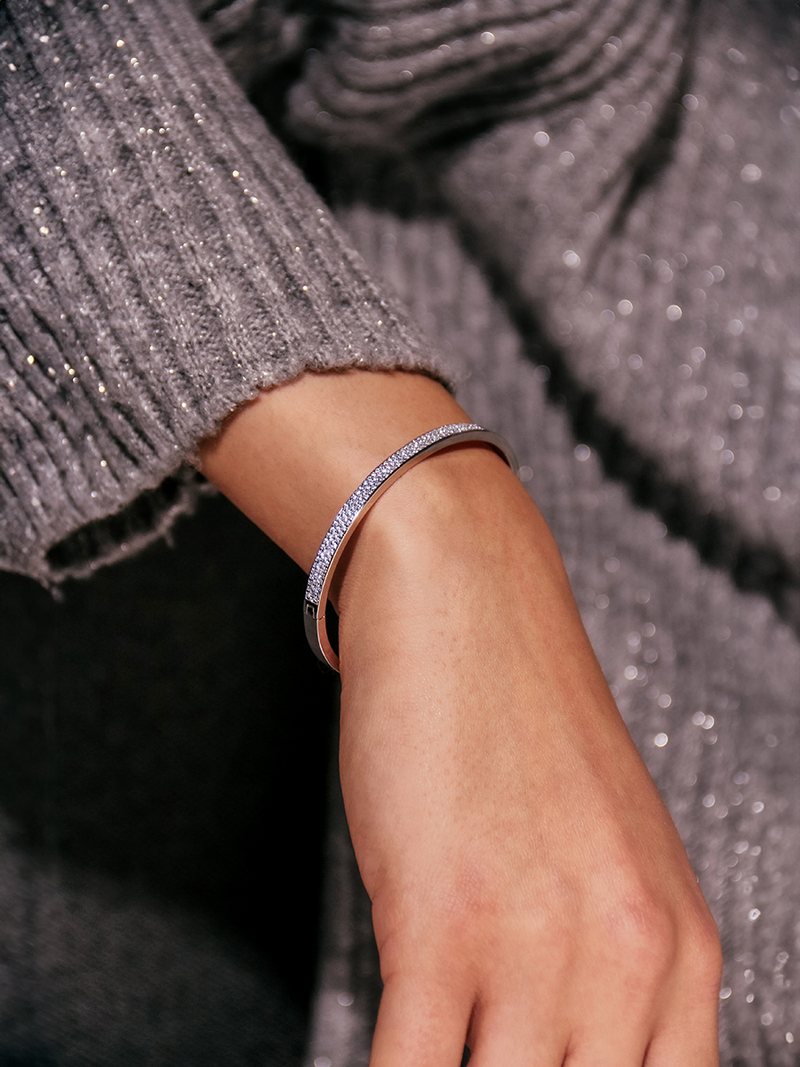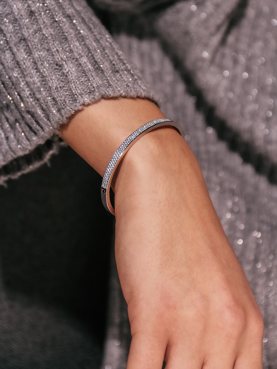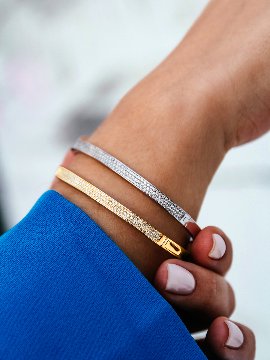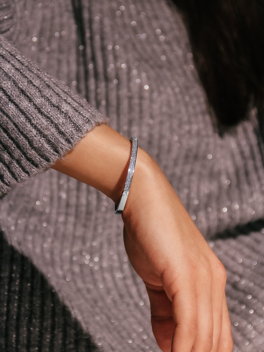 Неперевершений каркасний браслет з фіанітами із діамантовим ограновуванням - справжня класика стилю та моди. Носіть як самомтійну прикрасу та поєднуйте з іншими браслетами створюючи унікальний багатошаровий образ. Габарити: обхват - 17 см., внутрішні пара