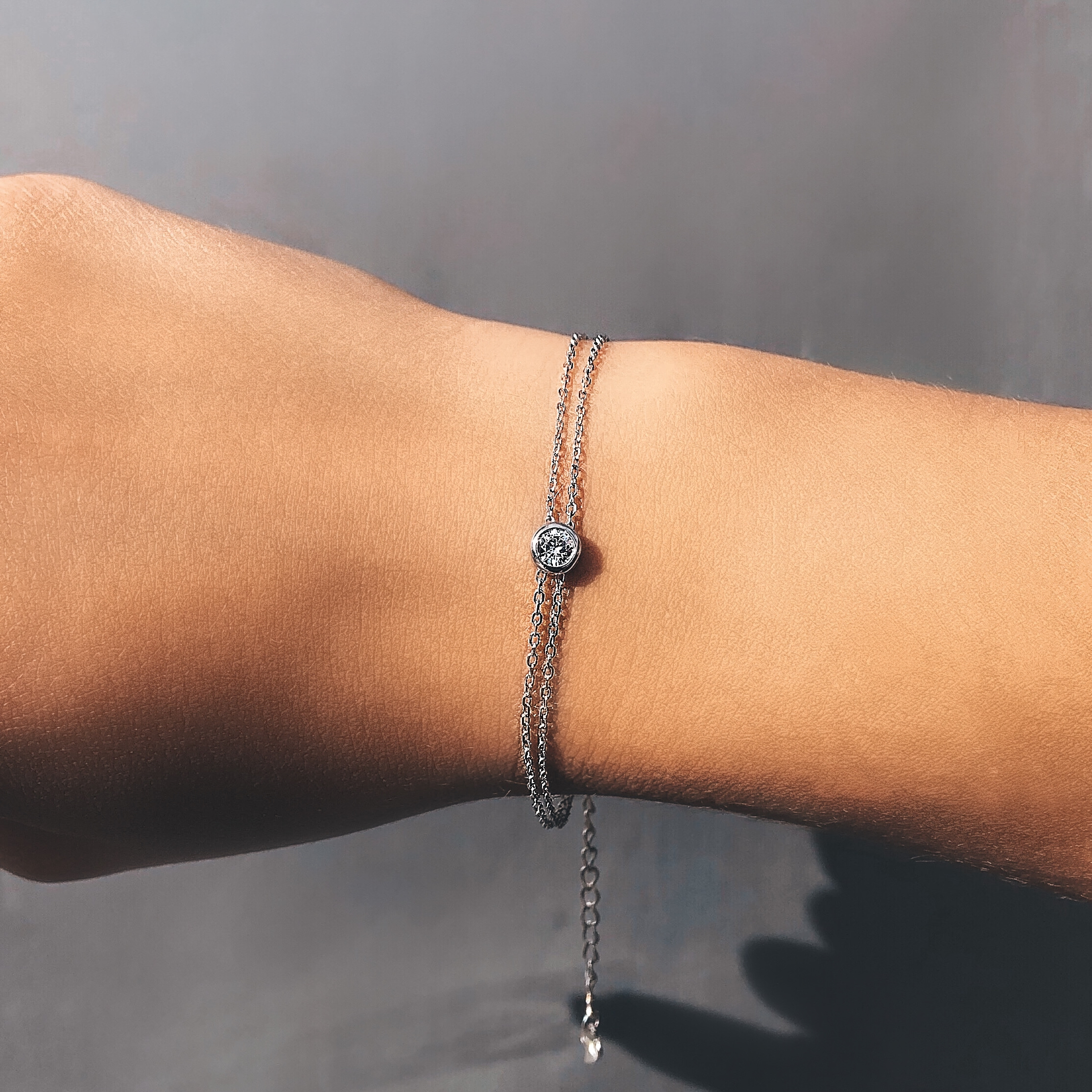 Ніжний срібний браслетик із родієвим покриттям, прикрашений фіанітом із діамантовим ограновуванням.