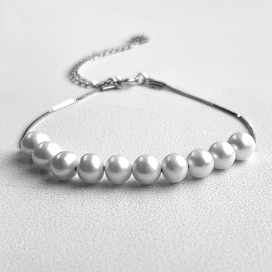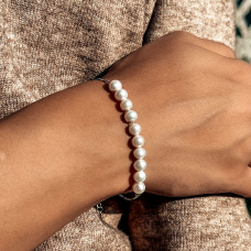 Срібний браслет із натуральними прісноводними перлинами та зручним регулятором розміру.