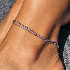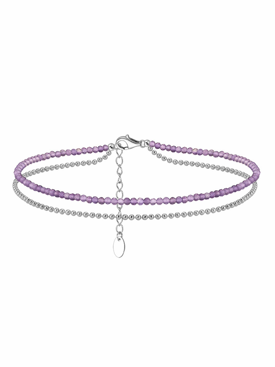 Подвійний срібний браслетик на ніжку з аметистом, натуральними прісноводними перлинками, родієвим покриттям та зручним регулятором розміру.