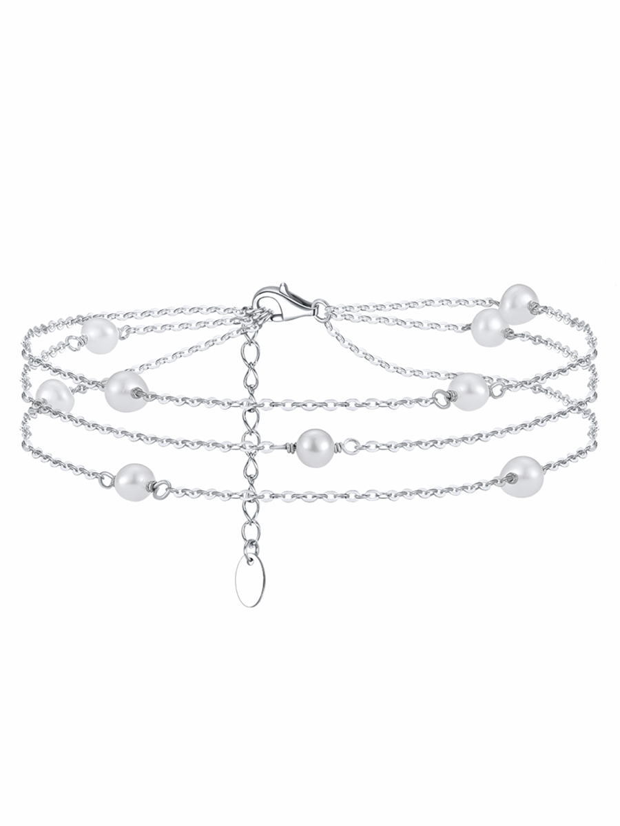 Потрійний срібний браслетик на ніжку з натуральними прісноводними перлинками, родієвим покриттям та зручним регулятором розміру.