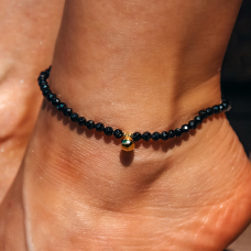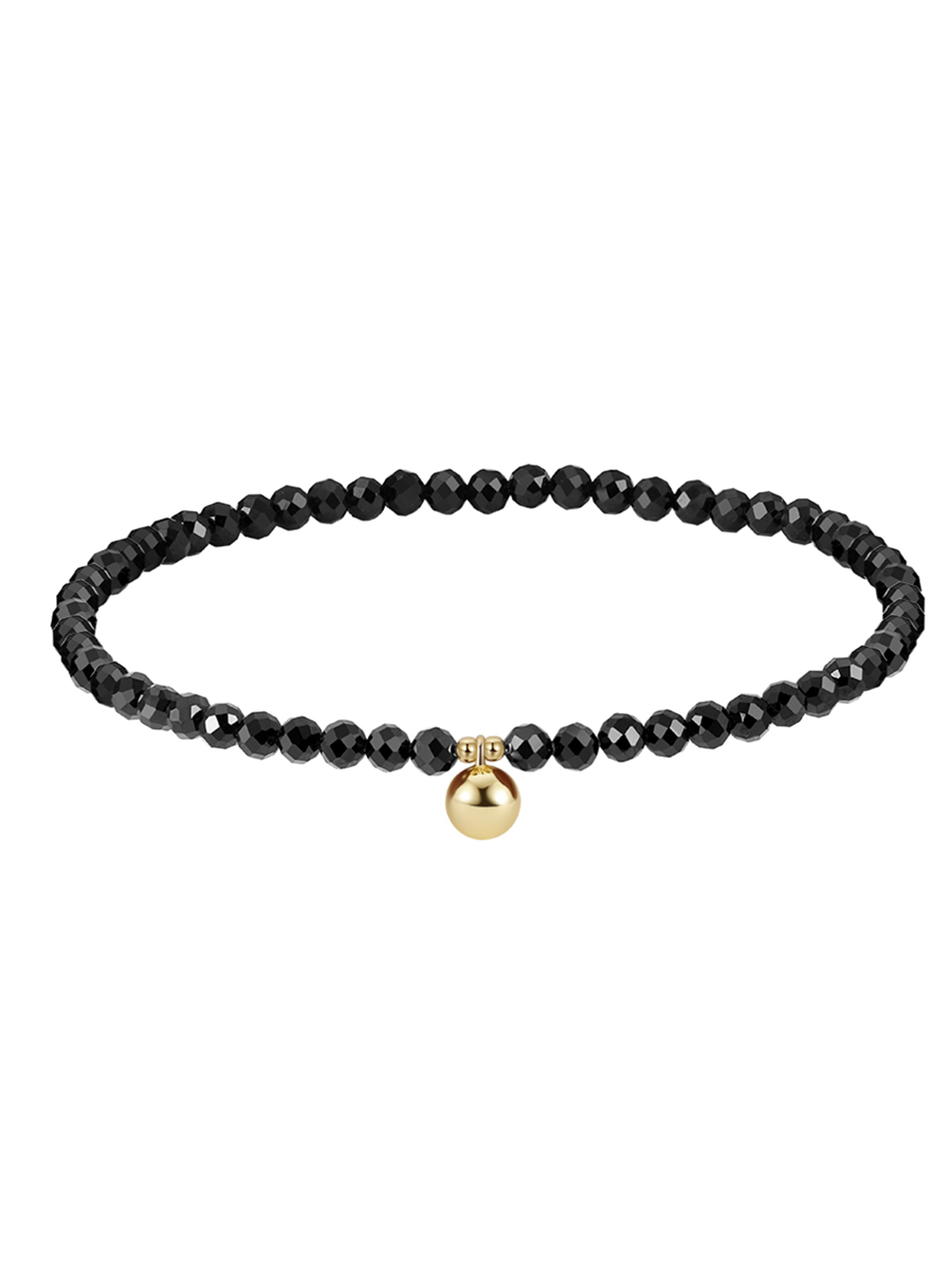 Стильний срібний браслетик на ніжку із натуральної шпінелі та кульки із позолоченого срібла 925-ї проби. Основа - ювелірна гумова жилка.