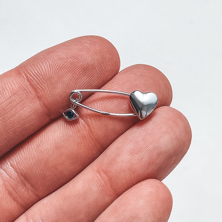 - Блузка або сорочка. Обережно: для легких тканин спосіб не рекомендуємо, адже є ризик залишити дірки або порвати улюблену річ. Срібна шпилька для дитини носитиметься саме в такий спосіб. Добре підходять джинсові, бавовняні, трикотажні тканини. Перед тим як прикріпити на тканину, радимо перевірити на непомітній ділянці одягу.