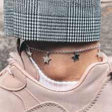 Silver bracelet on a leg with stars.