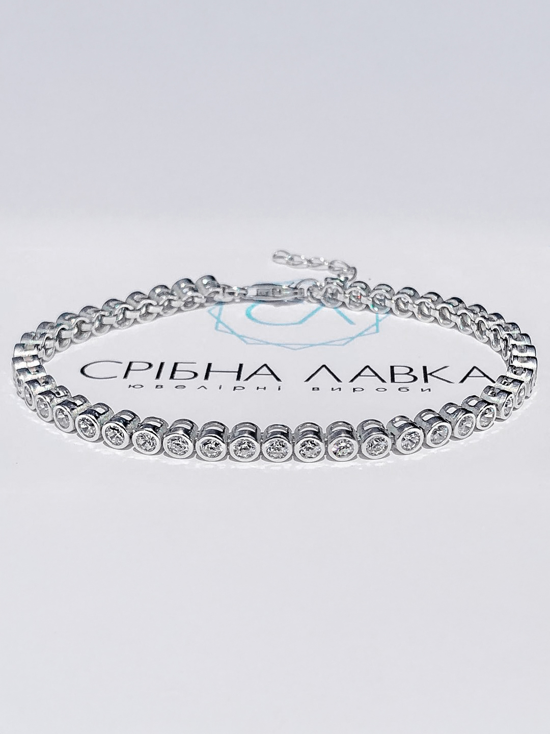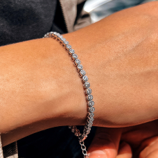A spectacular silver bracelet with rhodium plating and cubic zirconia with diamond cut.