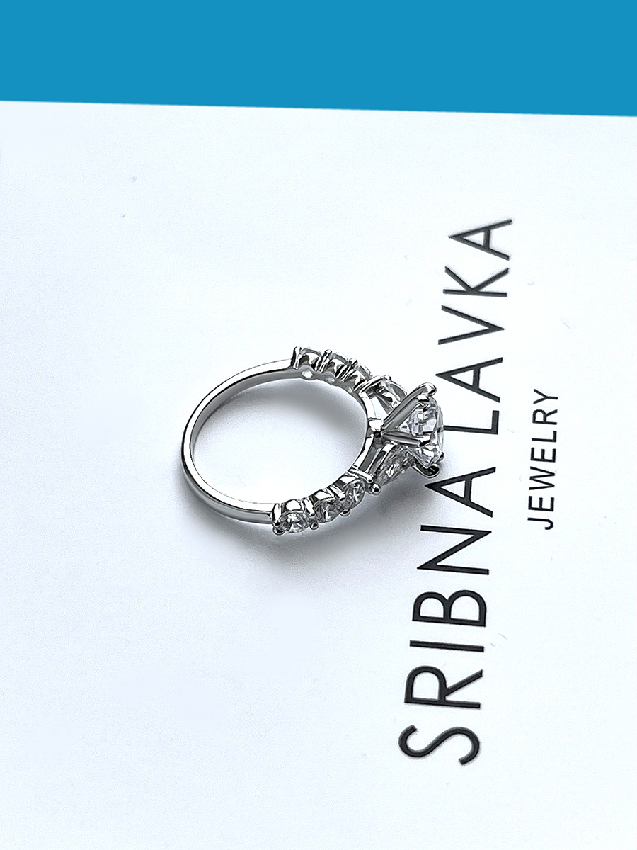 Silver ring in classic design, with premium cubic zirconias with 8A diamond cut. Ideal for a proposal.