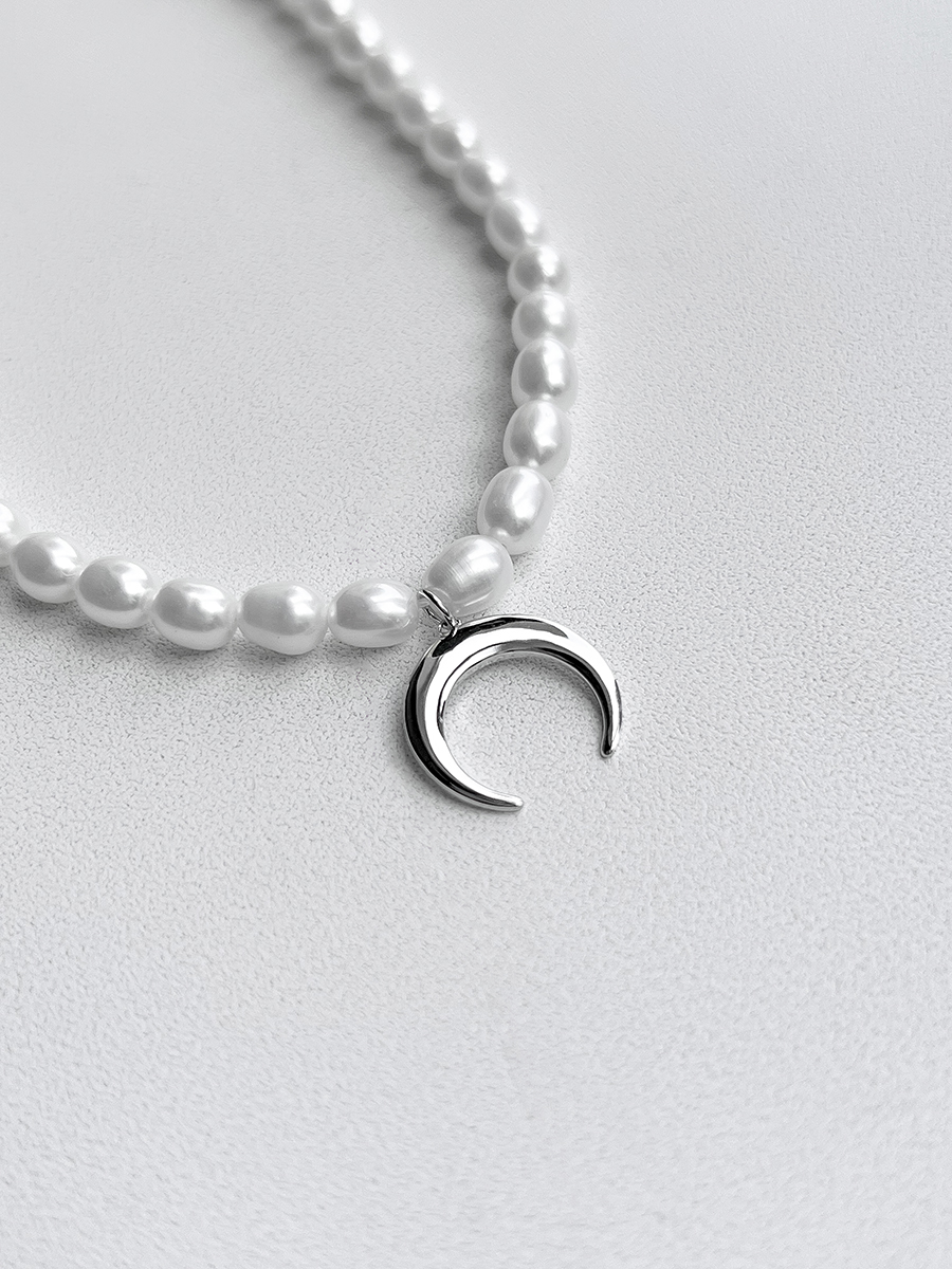 An unusual silver necklace made of natural freshwater pearls and a symbolic pendant ""Lunnytsia"