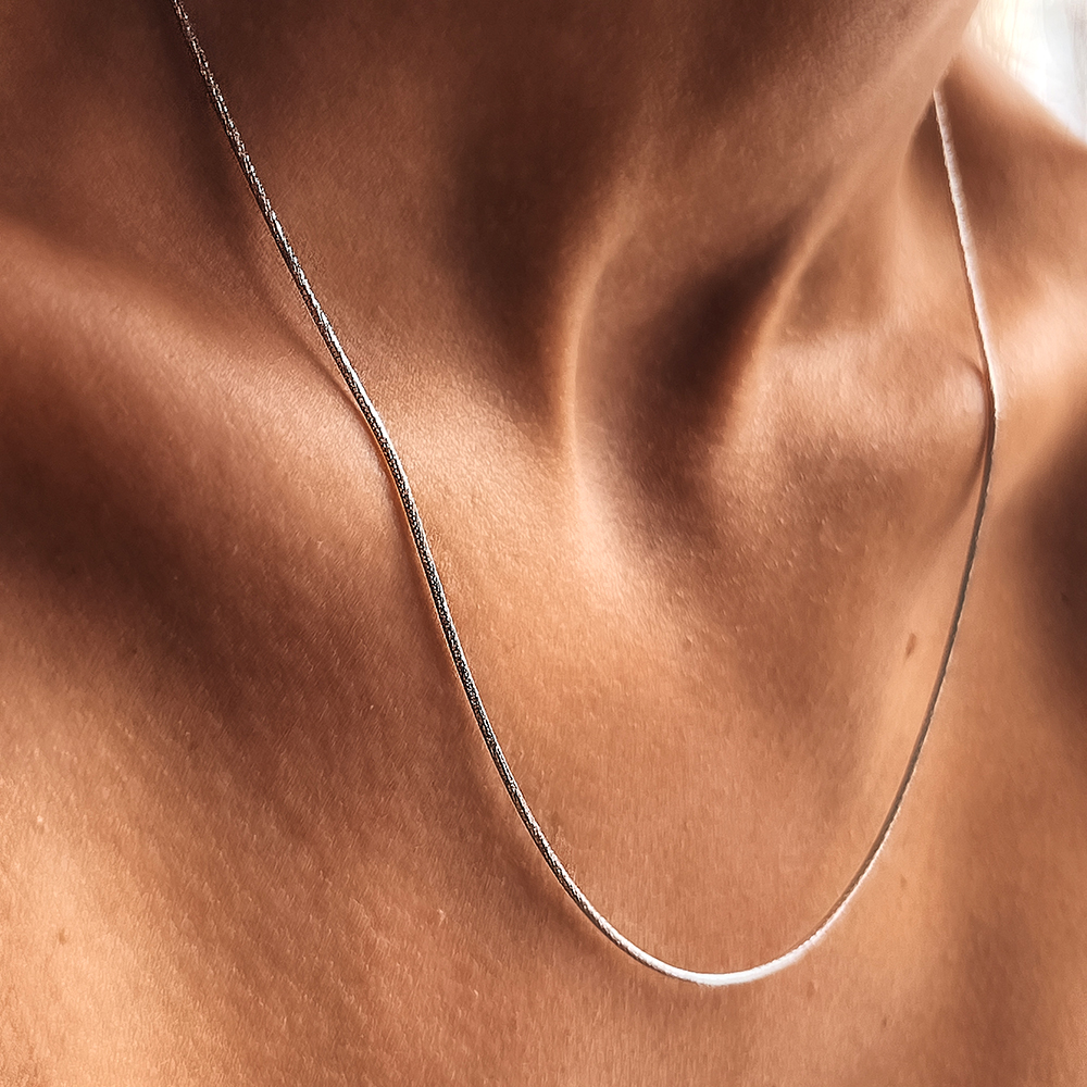 Rhodium-plated silver chain with a diamond facet.