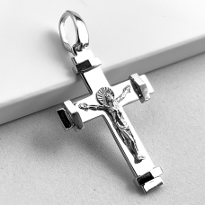 Silver cross with a crucifix.