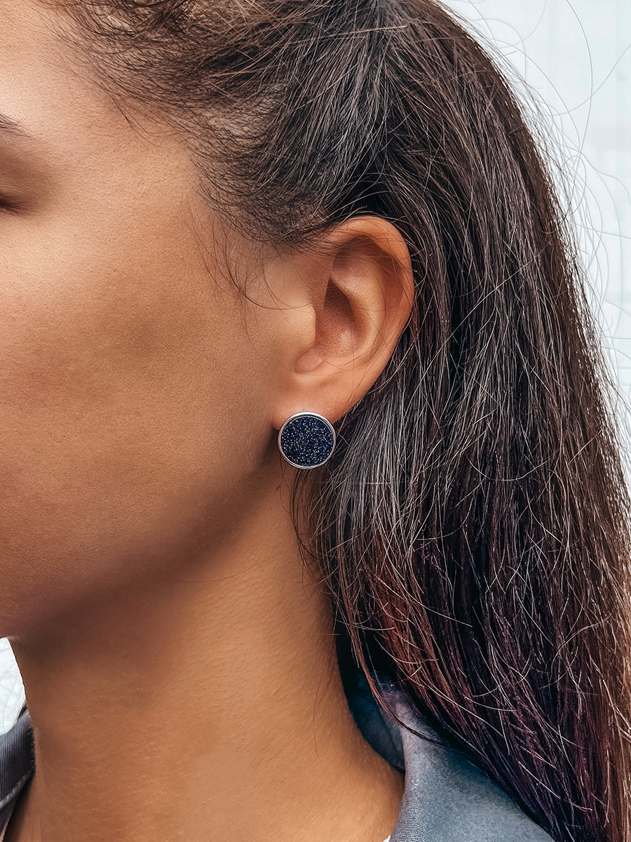 Laconic silver earrings with aventurine and rhodium coating.