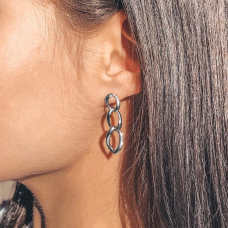 Stylish and laconic silver earrings with rhodium plating and screw clasps.