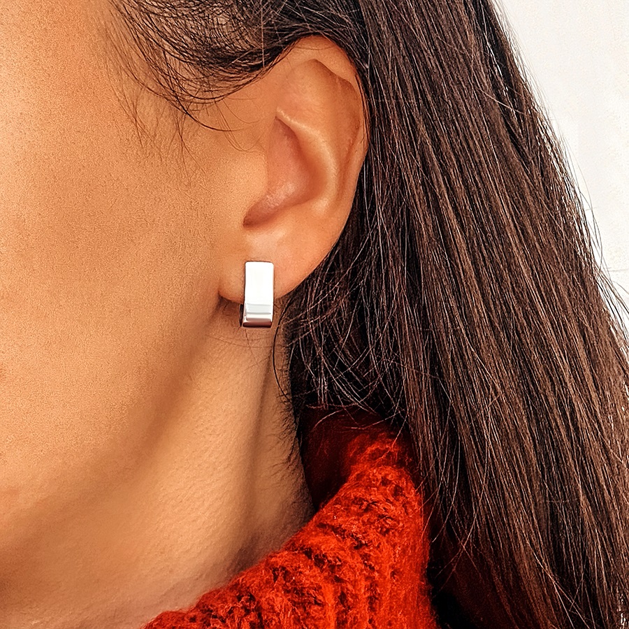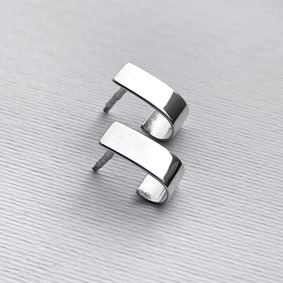 Stylish silver earrings with rhodium plating and screw clasps.