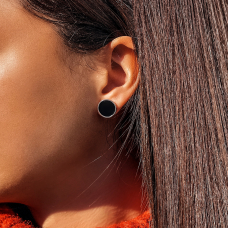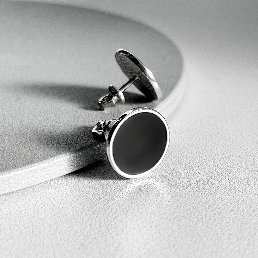 Laconic silver earrings with rhodium plating, black enamel and screw clasps.