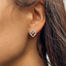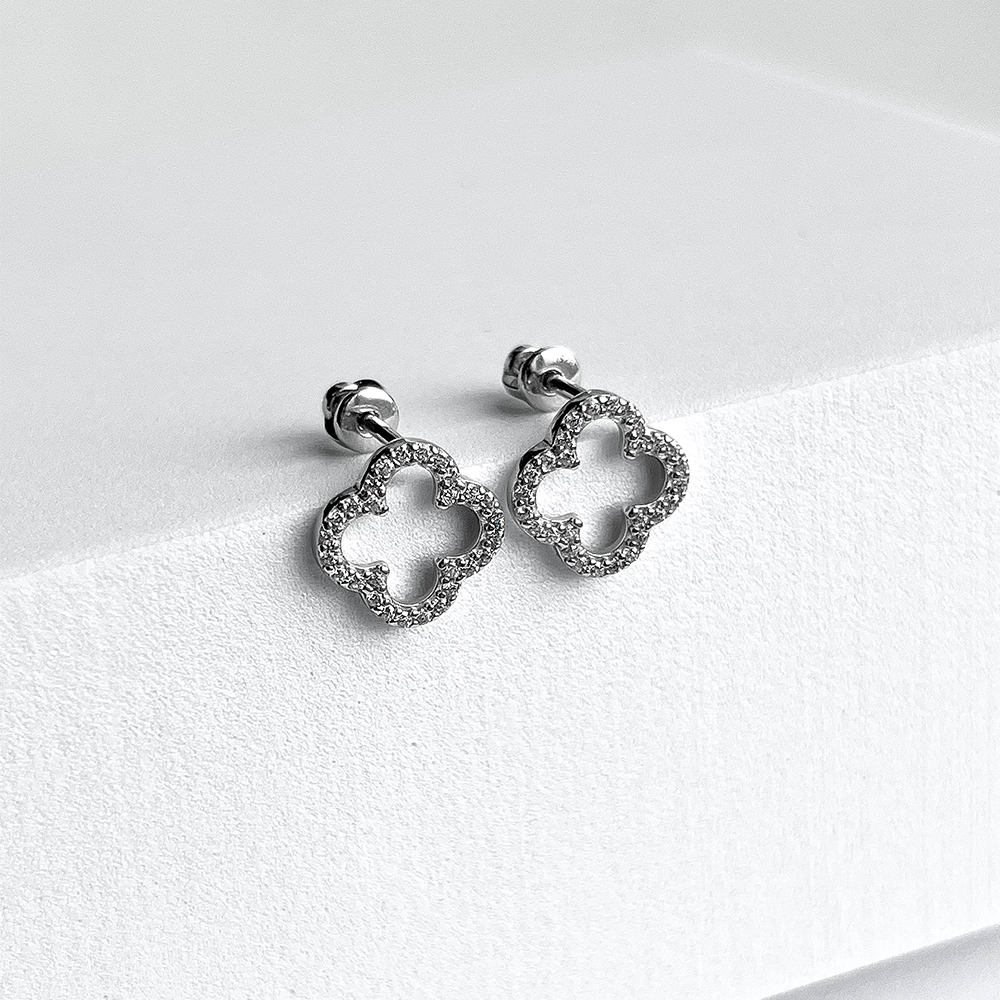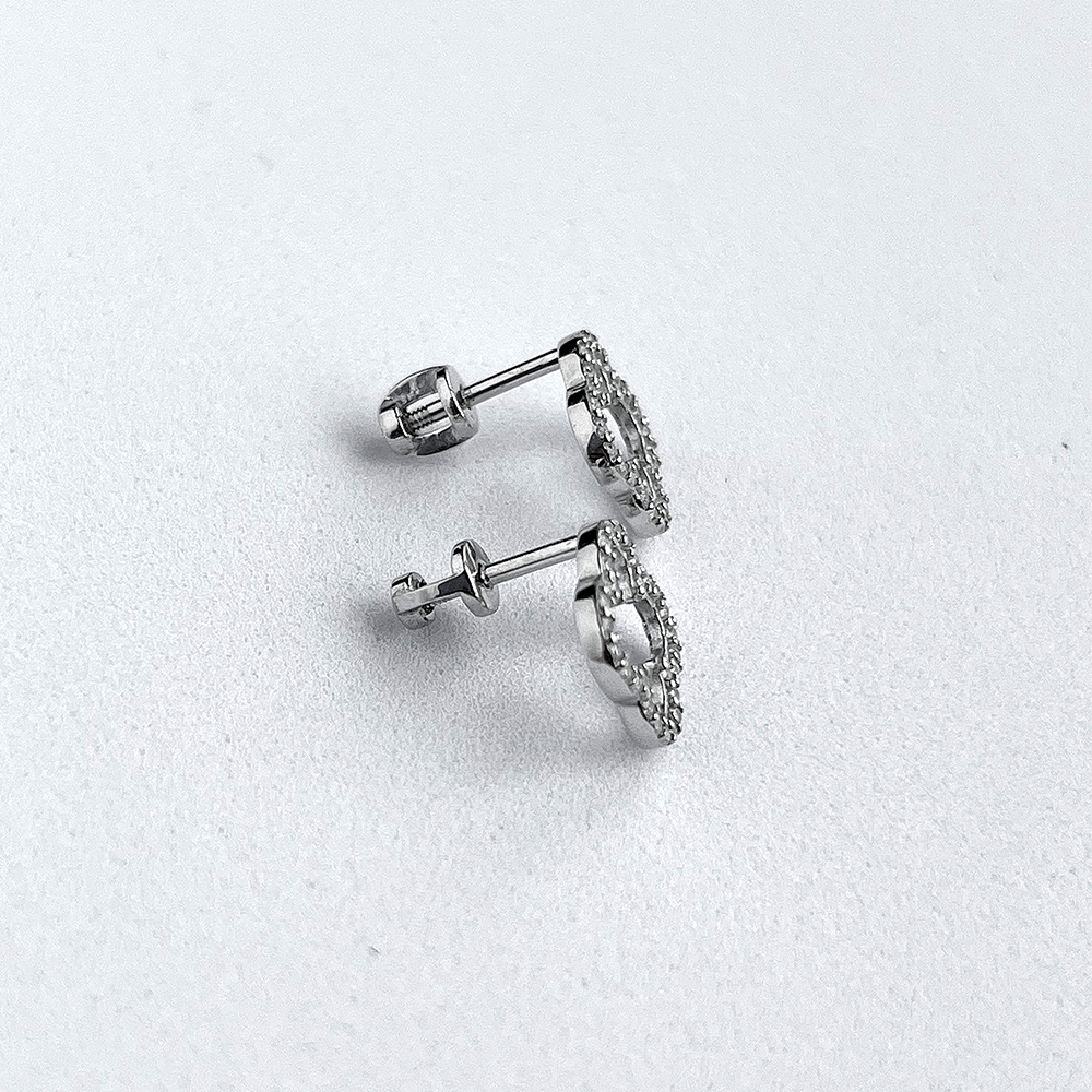 Rhodium-plated cubic zirconia pendants in silver with screw clasps.