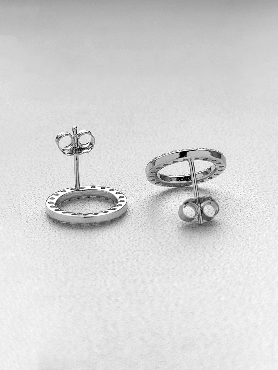 Trendy sterling silver earrings with rhodium-plated cubic zirconias and pin clasps.