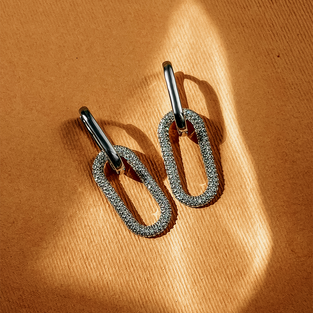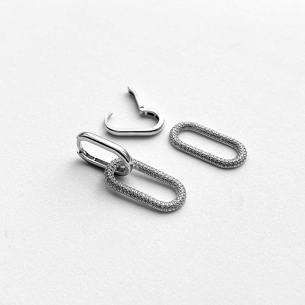 Silver earrings-transformers that can easily turn into pendants and more.
