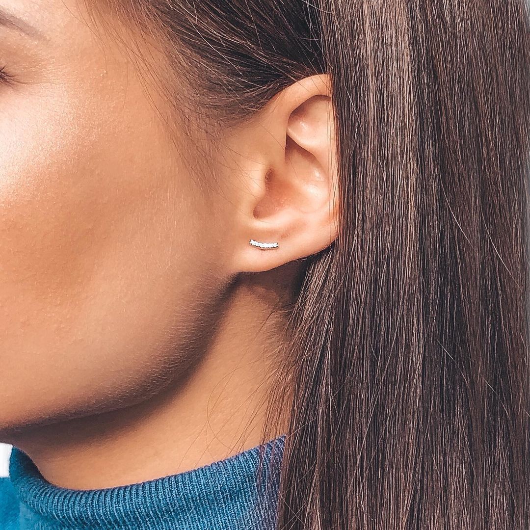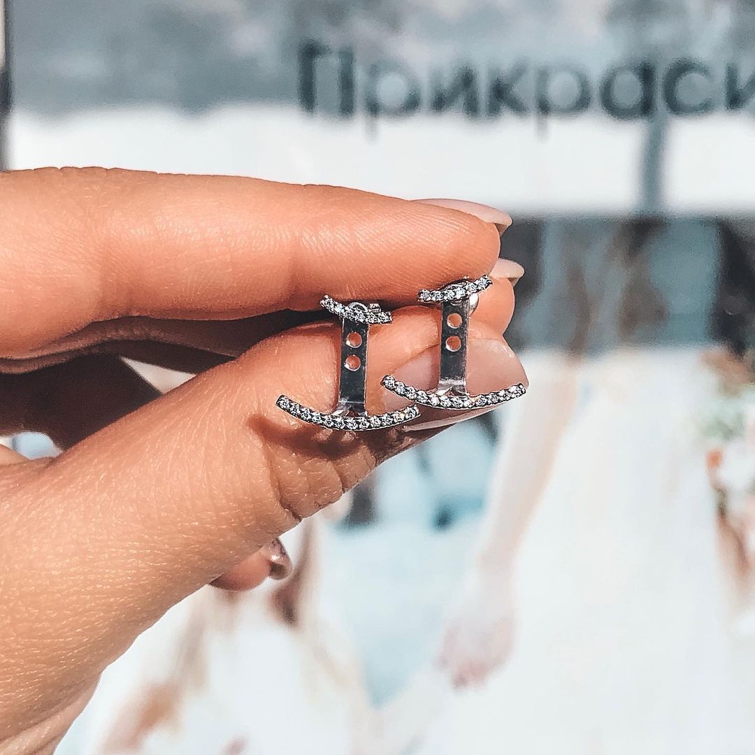 2 in 1 Unusual silver earrings-transformers, decorated with bright paths of cubic zirconia in the form of a smile.