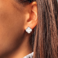 Trendy silver earrings with mother-of-pearl and rhodium plating, which add elegance and luxury to the look.