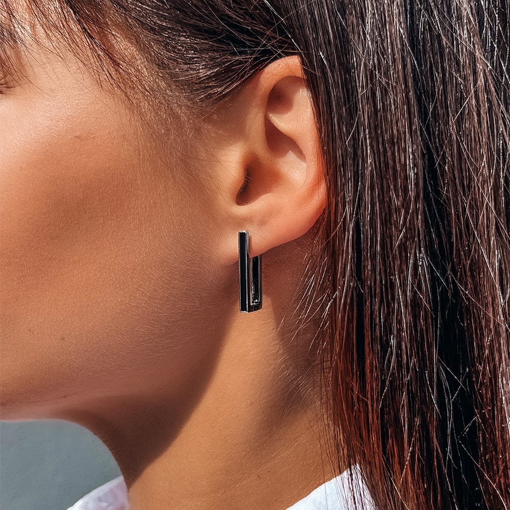 Onyx earrings Silver 925° (rhodium) 1121810