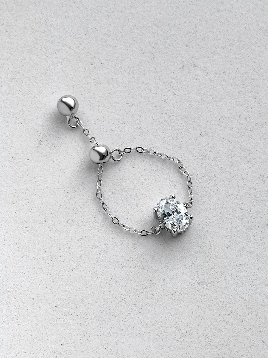 Незвичайна срібна каблучка з фіанітом. Розмір регулюється за допомогою кульки-слайдера від 0 до 19. Можна носити як фалангову каблучку.