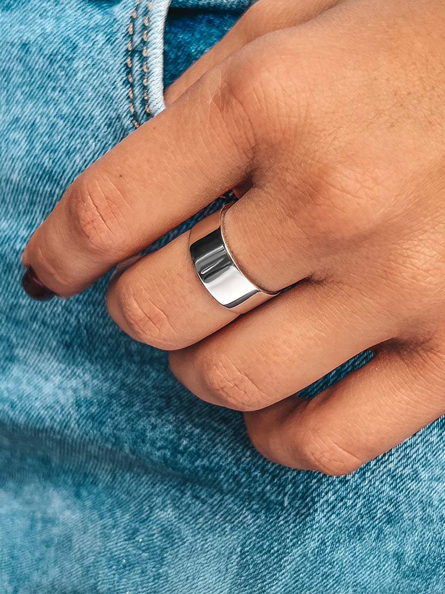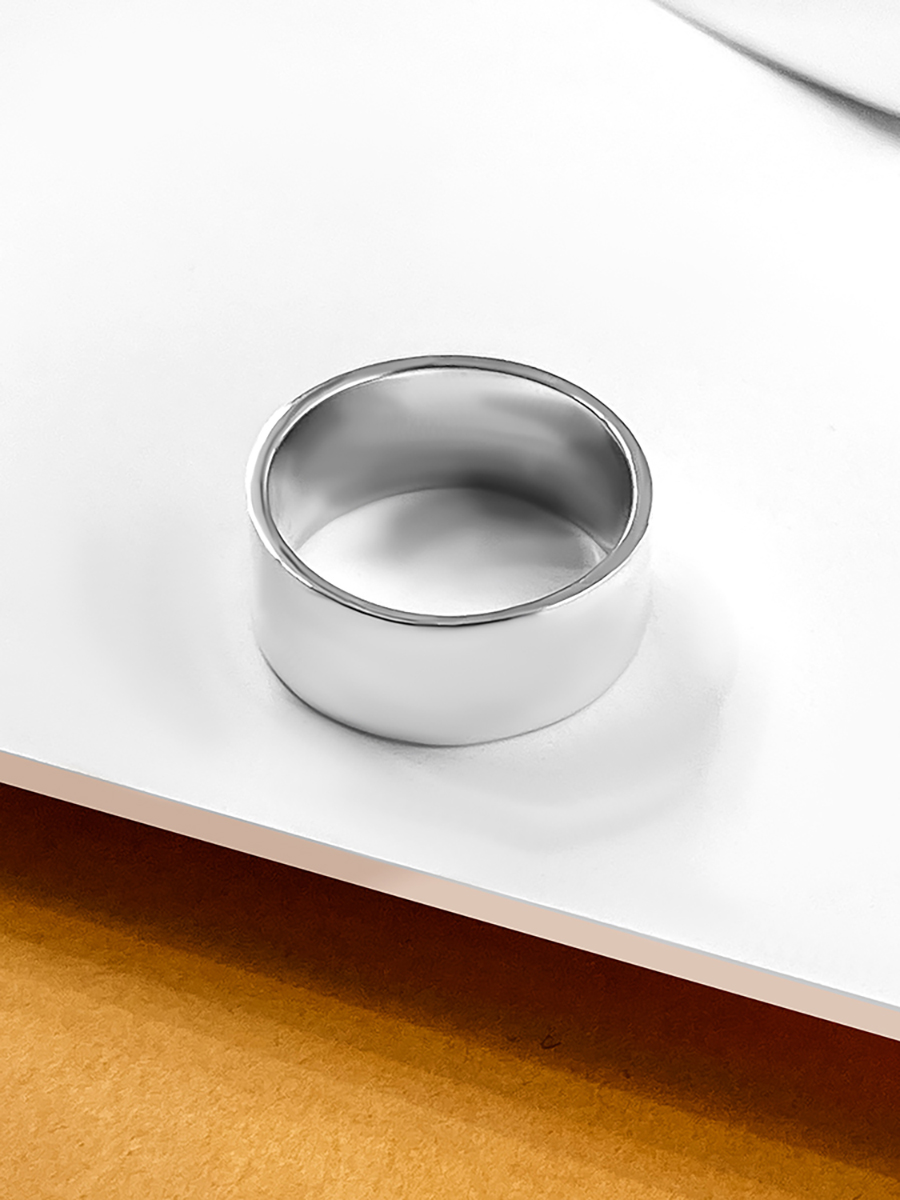 Базова срібна каблучка з ідеальною, дзеркальною поверхнею.
