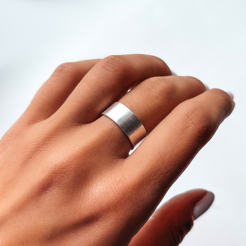 Базова срібна каблучка з матовою поверхнею, створена та довершена вручну.