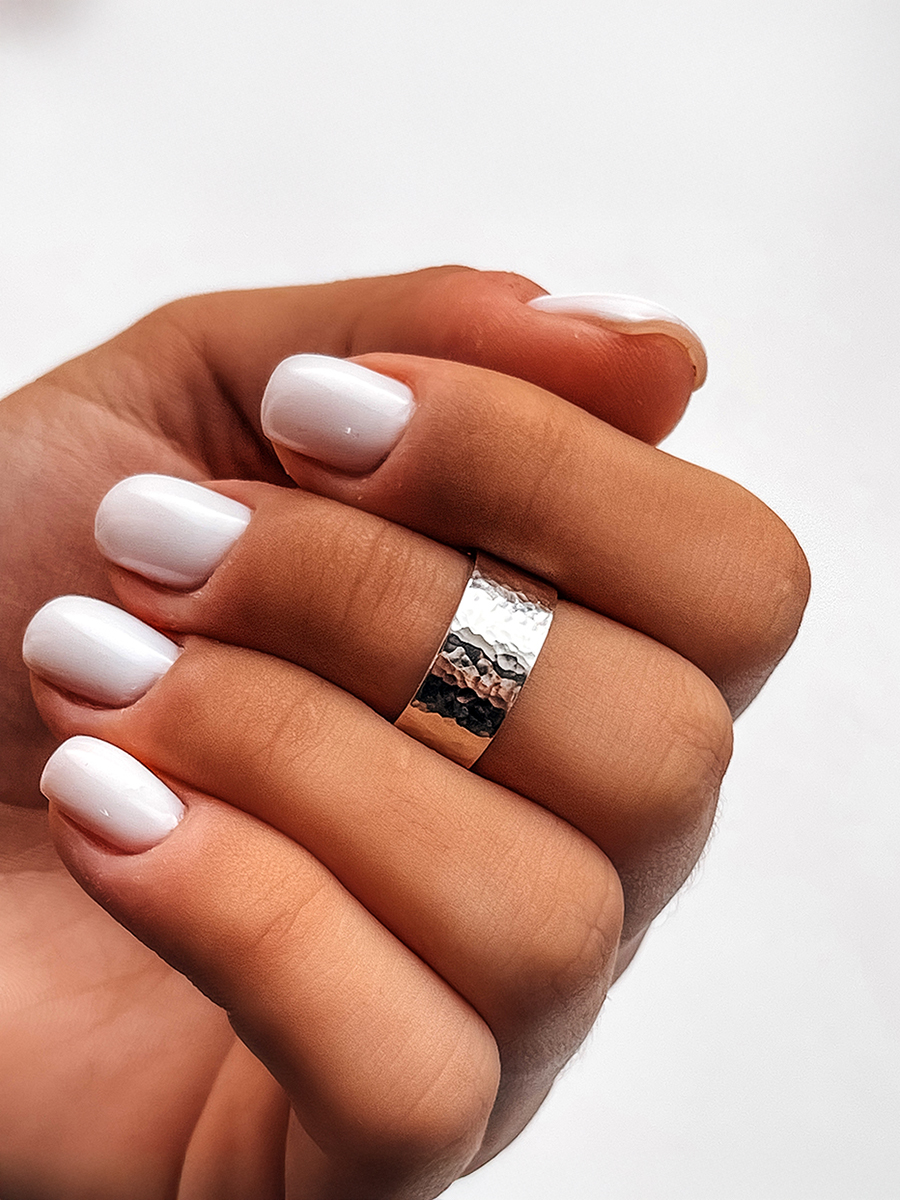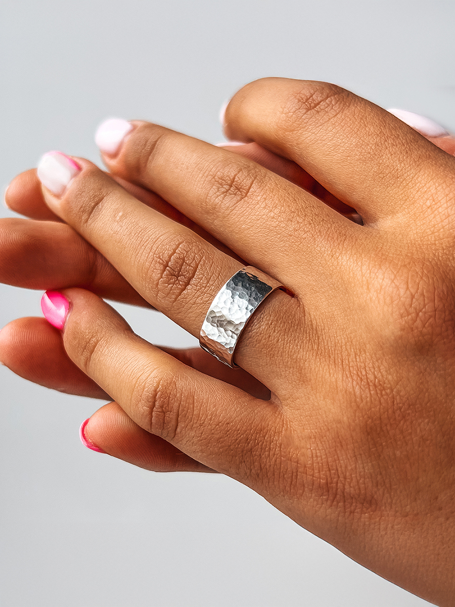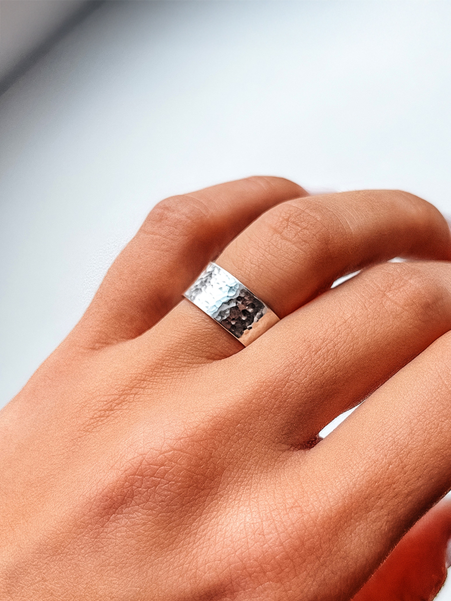 Срібна каблучка створена та довершена вручну із яскравою та сяючою поверхнею. Кільце має сотні нанесених вручну граней які створюють сліпучі спалахи а товщина складає близько 1 мм., тому його складно деформувати і пошкодити.