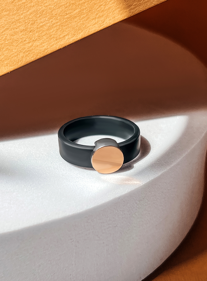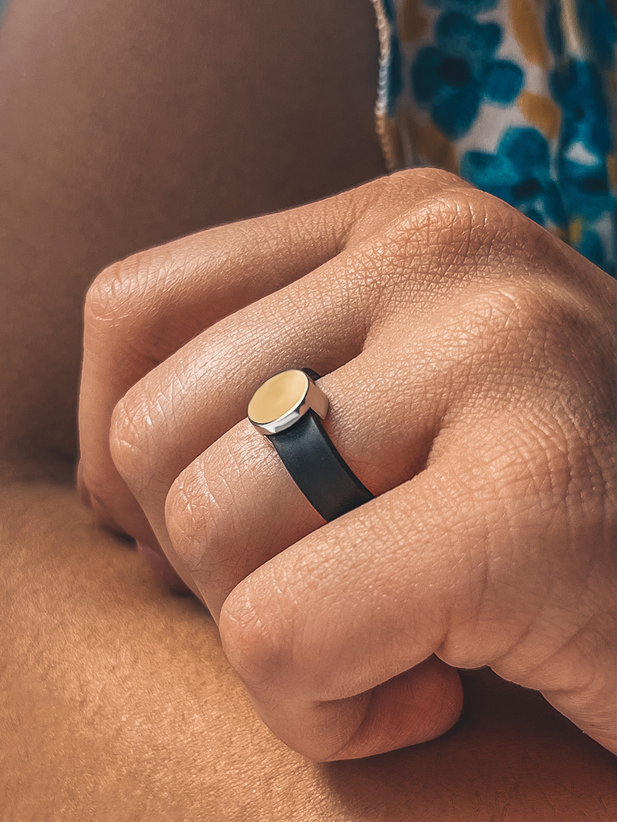 Лаконічна каблучка створена з каучука, срібла та справжнтого золота.