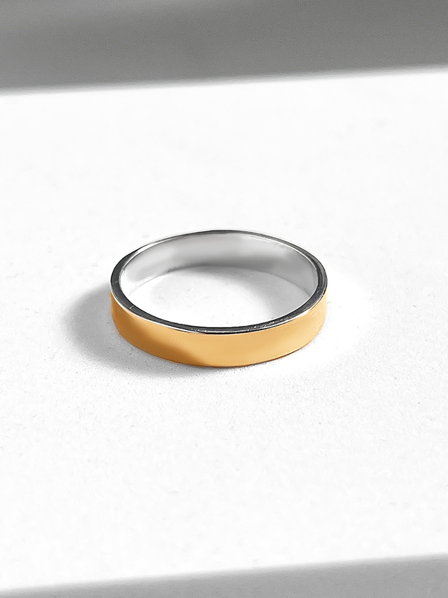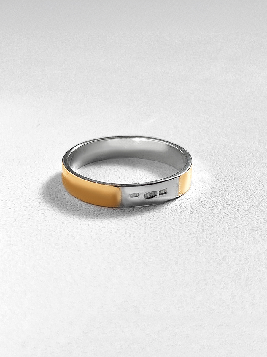 Срібна обручка із золотою вставкою (пластина), яка не витирається з часом, на відміну позолоти.