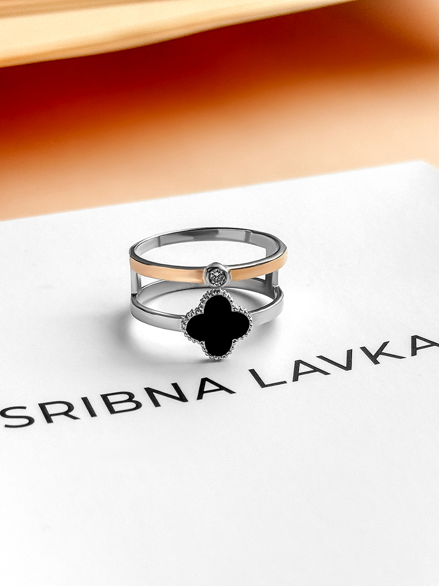 Неймовірна подвійна срібна каблучка зі вставками золота.