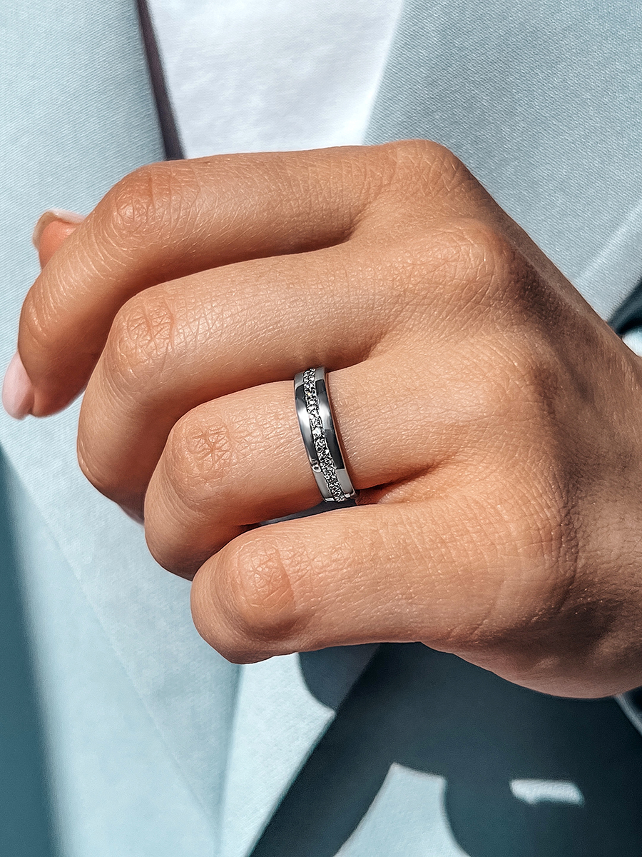 Сяюча каблучка з фіанітами із діамантовим ограновуванням по всій довжині.