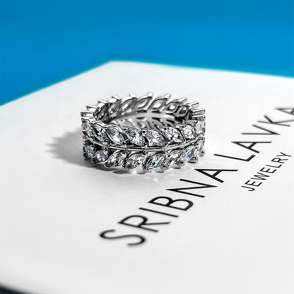 Крижана каблучка яка розтоплює серця. Довершена вручну зі срібла найвищої якості, удосконалена родієвим покриттям та фіанітами з діамантовим ограновуванням по всій довжині, що робить це кільце беззаперечним хітом.