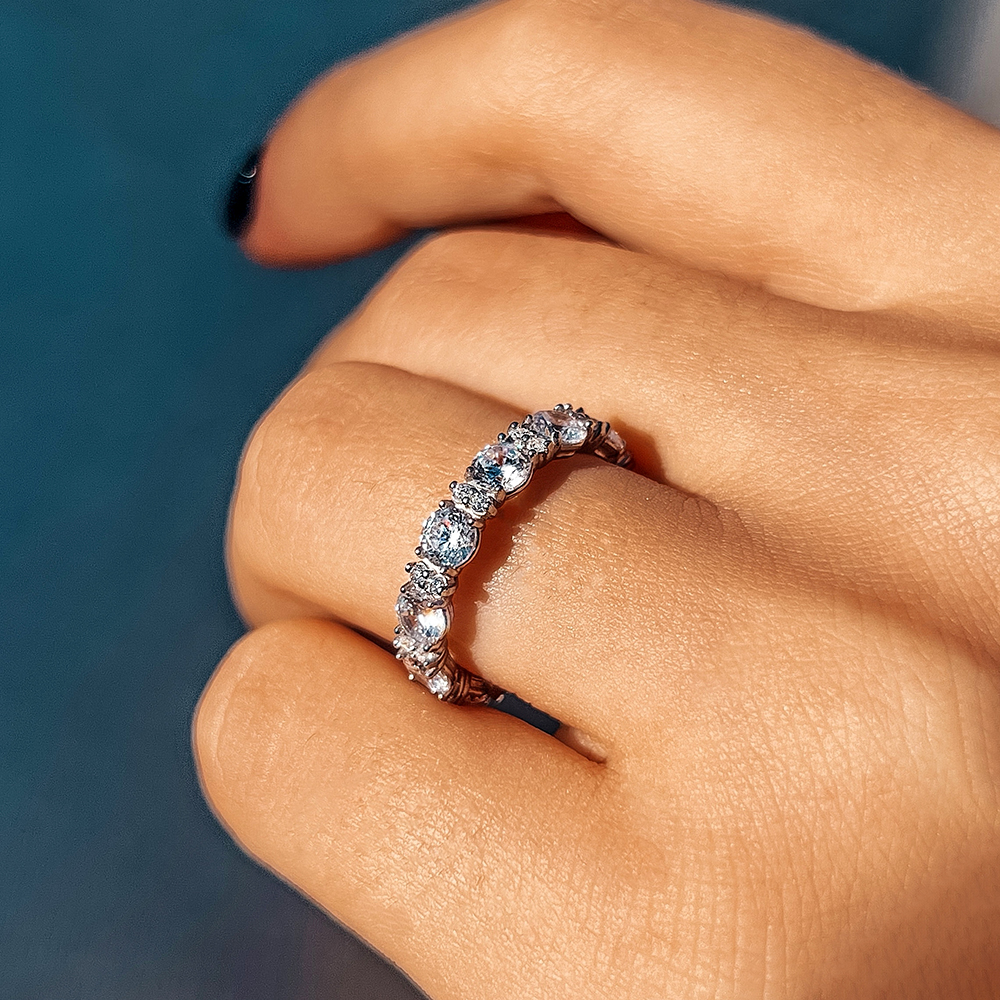 Довершена вручну каблучка із золота 585-ї проби, оздоблено блискучим рядочком фіанітів із діамантовим ограновуванням. Прикрасу можна носити як самостійно, так і в комбінації з іншими каблучками.