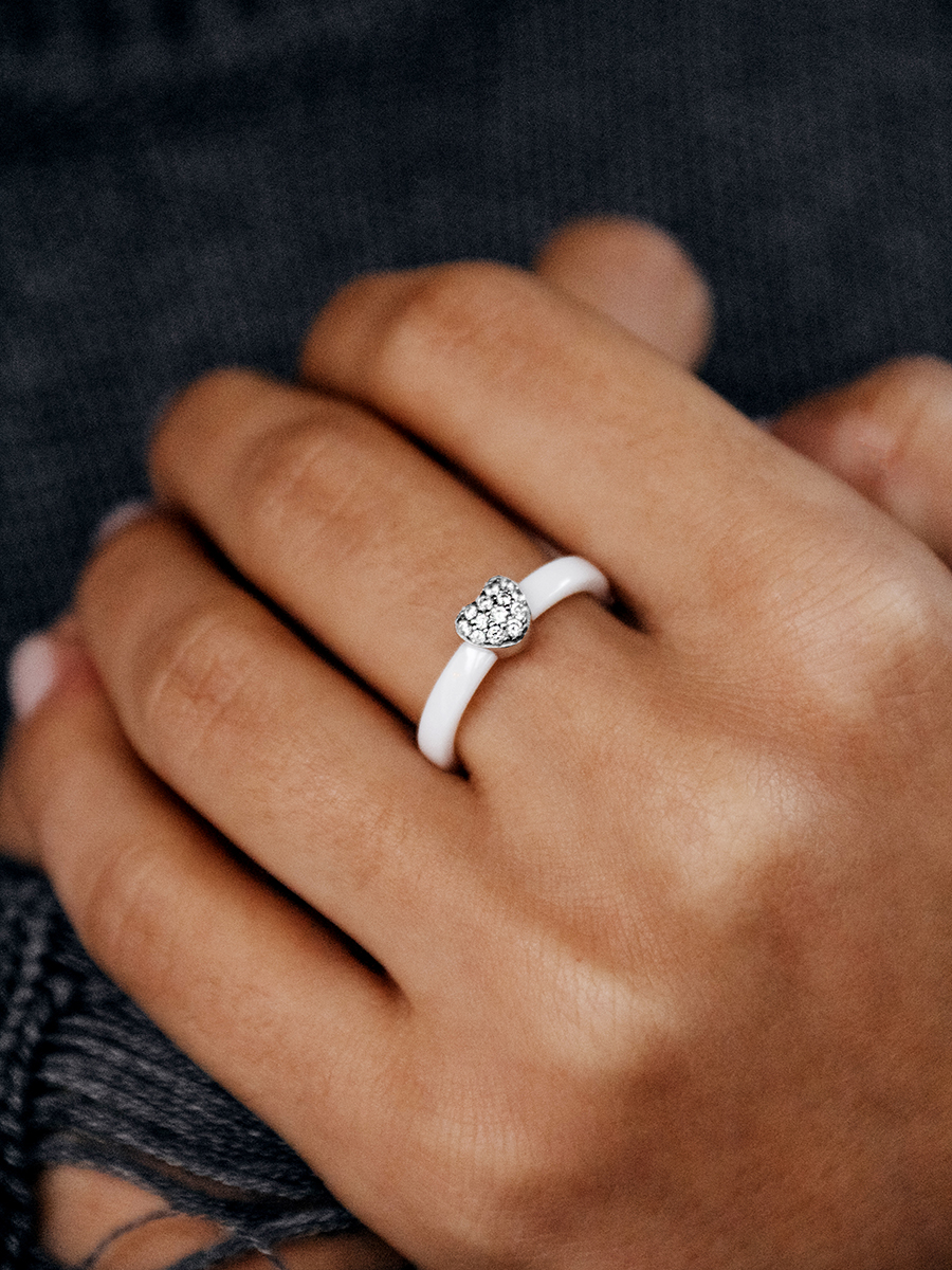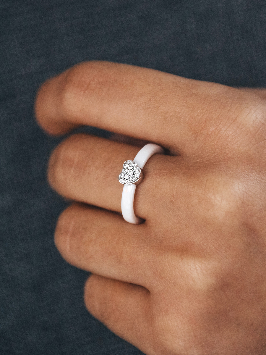 Каблучка з ювелірної кераміки та срібла із фіанітами.