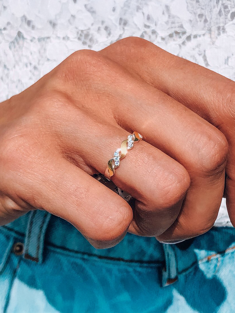 - Комбінація з іншими металами. Ще нещодавно у ювелірному етикеті було небажано змішувати різні матеріали, але тепер це знову у моді. Срібні каблучки відмінно гармонують з іншими металами, утворюючи унікальну аксесуарну групу. Однак створюючи ансамбль з прикрас, пам’ятайте про єдину стилістику та характер виробів.
