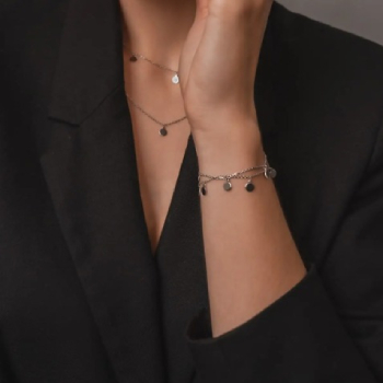 2. Мініатюрні ланцюжки поєднуються з мінімалістичними браслетами невеликої ширини. Підвіски в цьому випадку не потрібні. Маленька аксесуарна група, що складається з ланцюжка і браслета, підійде для щоденного носіння на роботу або прогулянки.