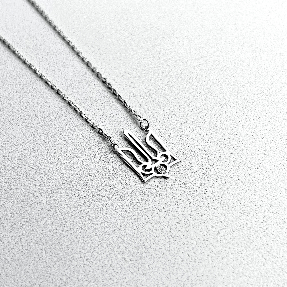 Патріотичне срібне кольє з гербом та родієвим покриттям.